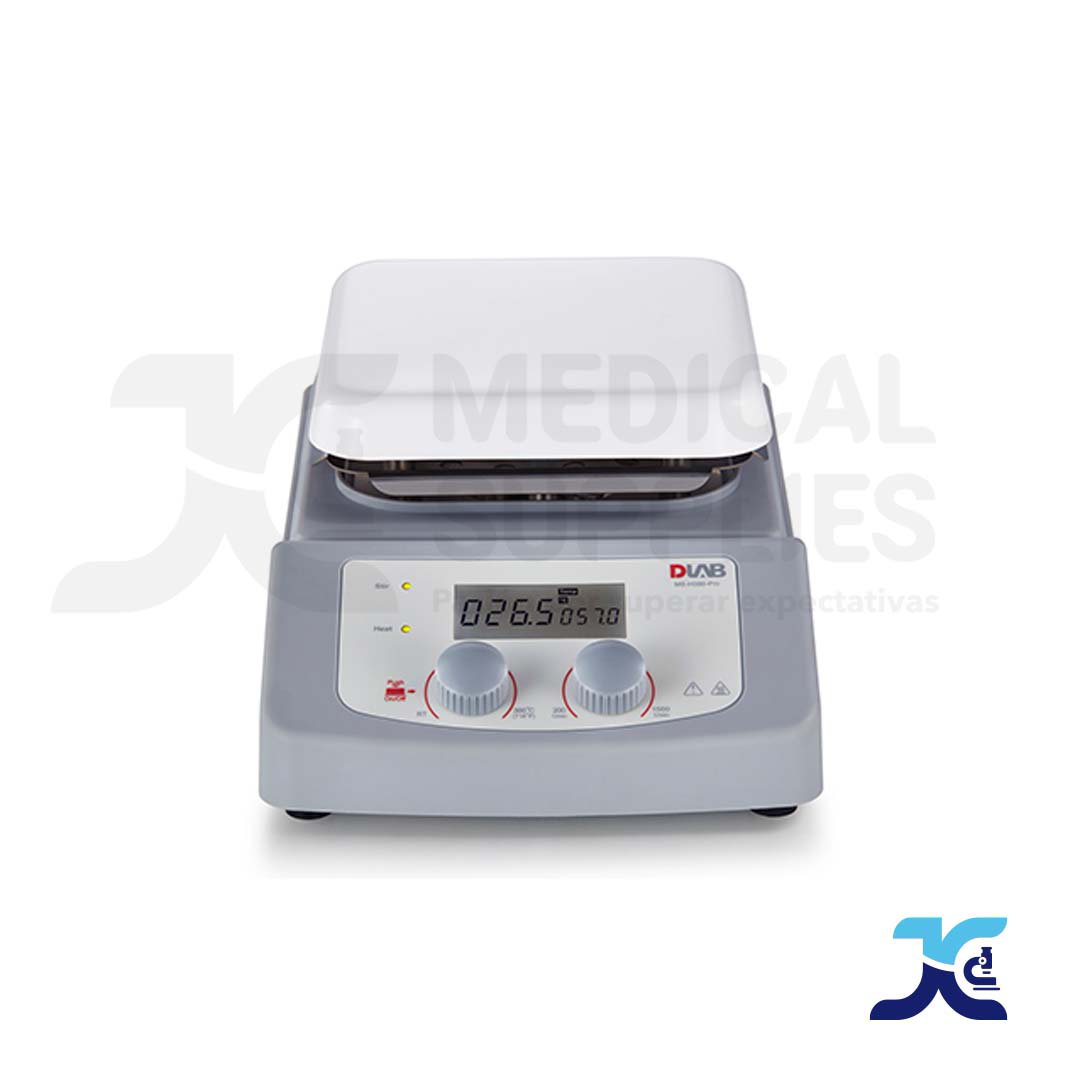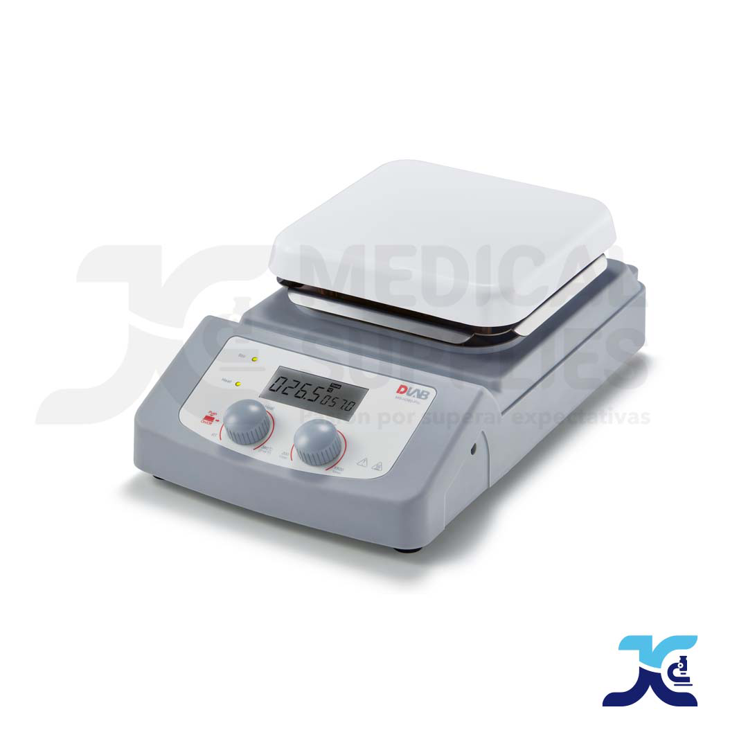 El agitador magnético con calentamiento MS-H380-Pro de DLAB es un equipo con estándares de seguridad y cubierta de aluminio con una placa de cerámica que permite una inmediata transferencia de calor, además con una temperatura de hasta 380°C brindan diferentes posibilidades de trabajo. Cuenta con sensor para medir la temperatura externa. La pantalla LCD muestra la velocidad de agitación y la temperatura.