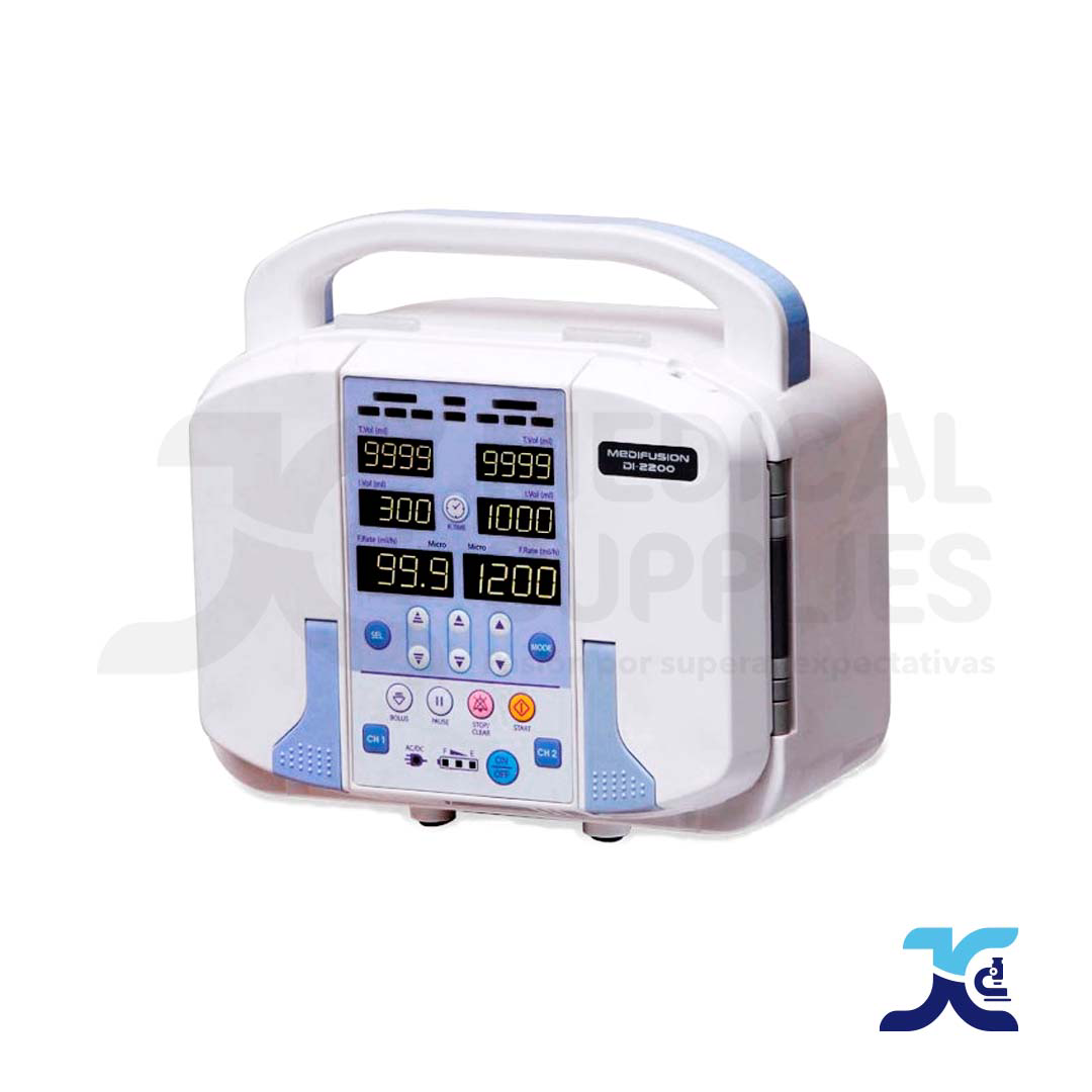 Equipo electromecánico utilizado para infundir fármacos, soluciones, en volúmenes altos de manera precisa y segura, lo cual facilita y optimiza la labor del profesional de salud. Para uso en los servicios de UCI, emergencia, sala de operaciones, etc. Equipo de diseño compacto y de fácil transporte. De doble canal de infusión. Programación y monitoreo digital controlado por microcontrolador. Mecanismo de bombeo tipo peristáltico. Permite visualizar los parámetros programados: volumen de infusión, flujo de infusión y volumen total. Este equipo permite configurar convenientemente el rango de flujo: configuración micro, modo de dopaje, modo de configuración de tiempo, modo de configuración Gtt (Goteo/min). Es compatible con la mayoría de líneas de infusión. Batería recargable. Función de varias alarmas: puerta abierta, oclusión, detección de burbuja de aire, batería baja, infusión completa, error de goteo, activación de función de bloqueo. Puerto USB para actualización del software.