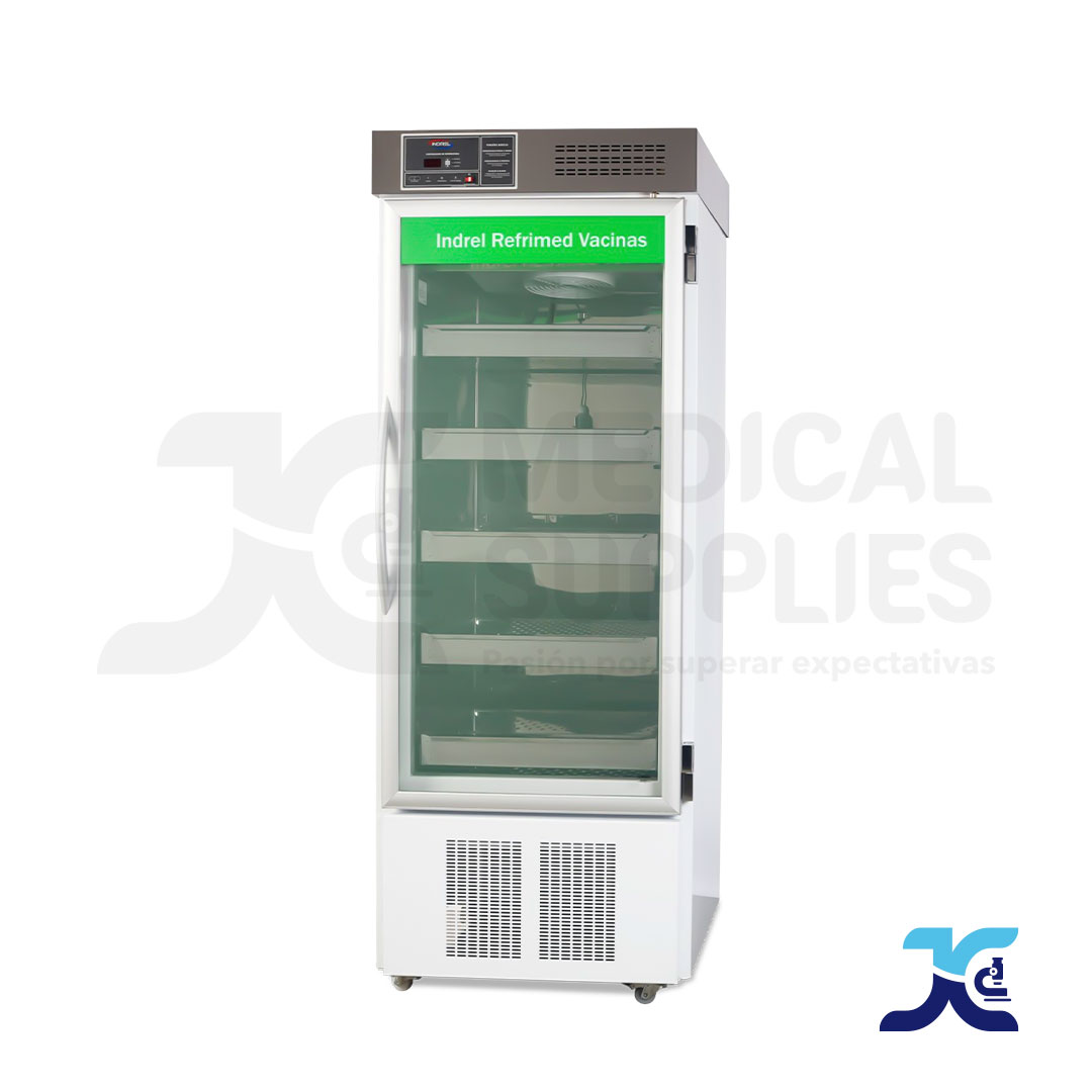 La refrigeradora vertical para vacunas RVV 440D un equipo de refrigeración especializado para el almacenamiento en frío de productos farmacéuticos, productos biológicos, entre otros, a una temperatura de entre 2oC a 8oC, con sensor en la solución de diatermia, lo que indica la temperatura exacta del producto almacenado. Cuenta con un sistema de flujo de aire interno para mantener la temperatura uniforme en toda la cámara.