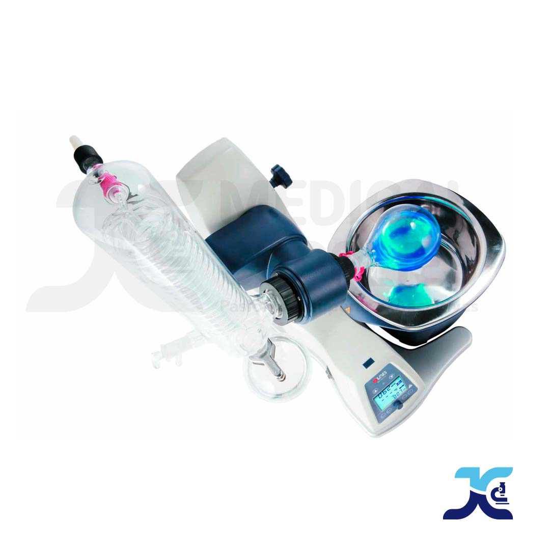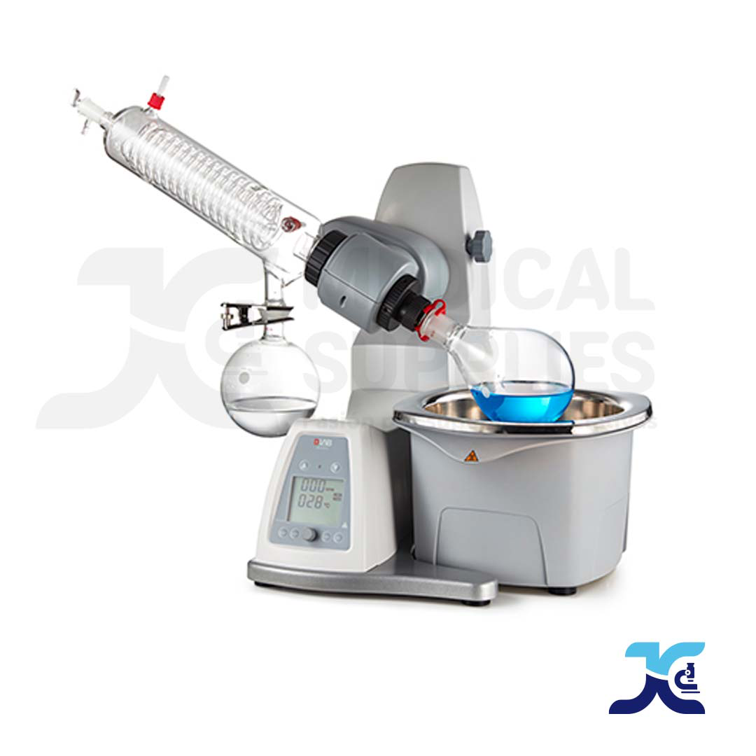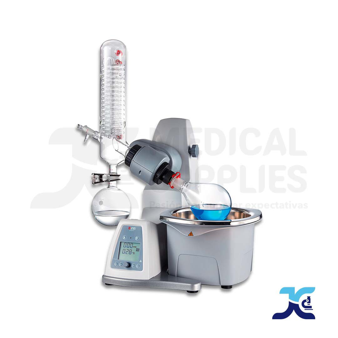 Presenta un condensador patentado (superficie de refrigeración 1.500 cm²) con un excelente efecto de enfriamiento. Elevación motorizada con acción rápida, liberación automática matraz de evaporación a la posición superior en caso de fallo de alimentación.