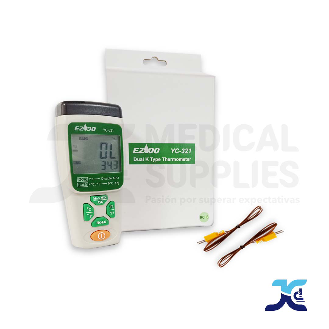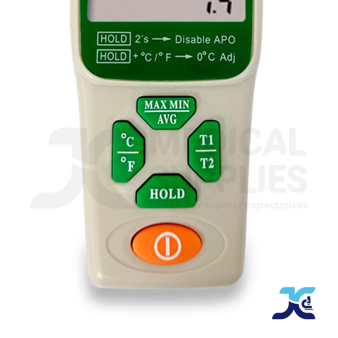 Es un instrumento que permite la medición de la temperatura en soluciones líquidas y de partículas con su sensor en amplio rango, siempre y cuando el equipo esté en temperatura ambiente. Incluye dos sensores para mejor medición. Útil para trabajo de campo y de laboratorio.